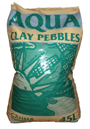 CANNA Aqua Clay Pebbles アクア・クレイペブルスは、R.H.P認証を取得しており、数多くの他社ブランド製クレイペブルスとは一線を画しています。 高い多孔性と高い含気性のいずれも兼ね備えているため、培地をしっかりとつかむ、頑丈な根が張ります。 pH値は中性の無機培地なので、カビ菌などは含んでおらず、腐りません。根が張りやすい形状をしていて、ひとつひとつ形が違うので、根の生長・発達に適した不均一な構造ができます。 そのため、生長期と開花期のいずれでも旺盛な生長をうながします。 アクア・クレイペブルスは、熟練ガーデナーが選ぶ、理想的なハイドロボール(発泡煉石)です。 そのユニークな構造のおかげで、すべての栽培プロセスにおいて、肥料やりと湿度管理をシンプルに行いたいガーデナーに、おすすめの培地です。アクア・クレイペブルスは、特殊な粘土から製造されます。 そのため、水耕栽培システムでの使用に、非常に適しています。 【 使用方法 】 はじめて使用する時には、クレイペブルスに付着している茶色の粉塵を水道水でよく洗い流してください。 その後、pH値を5.5前後に調整した水に24時間浸し、よく水を切ってから水耕栽培システムにセットすると、クレイペブルスをさらに清潔にできます。 クレイペブルスは、数回ほどは再利用が可能です。 通常は水道水で十分に洗い流すだけで再利用できますが、病原菌が出てしまった場合や残留肥料の結晶が多く出ている場合は、熱湯に浸すか、やや強い酸性に調整した水に24時間浸したのち、いずれもよく乾かしてから再利用します。 【 キャナ・アクア・クレイペブルスに最適な肥料 】 循環式水耕栽培システム専用に開発された肥料 Aqua Vega と Aqua Flores は、クレイペブルスに最適です。 いずれも培養液のpH値が適正範囲内から外れにくい成分設計になっています。 培養液のpH値調整は、つくったときの一度だけでOKです。(1〜2週間に一度は,必ずすべての培養液を交換してください。)