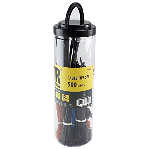 TR Industrial tr88300 Assortedケーブルタイセット(500ピース、7インチ、ブラック/レッド/ブルー/イエロー