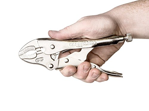 Turn knob adjusts working pressure to lock securely at varying widths. This 5 in. curved jaw locking pliers is ideal for securely clamping, holding, and tensioning materials. They're forged with heavy duty Chrome Molybdenum steel jaws and teeth, underwent rigorous heat-treated process, and as a result are more durable and grip objects from any angle better than our competitors. The classic trigger lock release is integrated to securely lock the pliers in place while you work, adjustable to lock securely at varying widths. Jaw width opens up to 1-7/8 in. The pliers also feature convenient built-in wire cutters.
