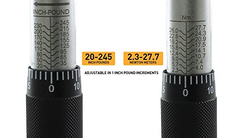- 1/4" Drive, 20-245 in-lbs, 1 in-lb increments, +/-4% accuracy