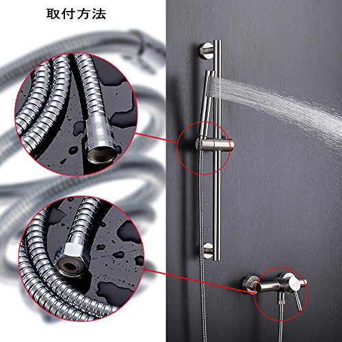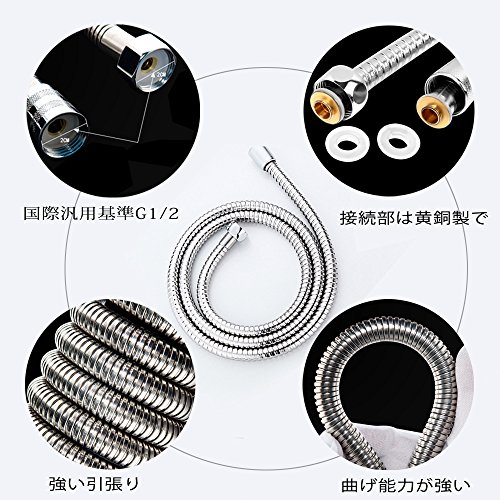 - (1.5M)耐久ホース:ステンレス製ホース。汎用G1/2サイズ、接続部は黄銅製で、亜鉛やプラスティック製より優れ、ほとんどのシャワーヘッドに取り付け可能。