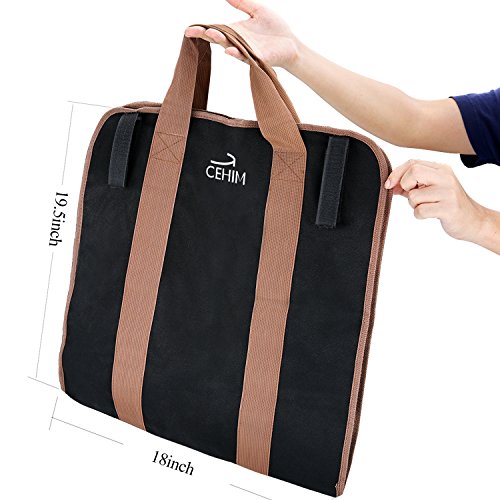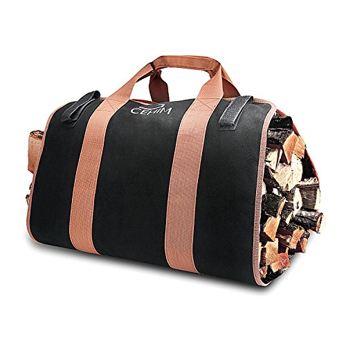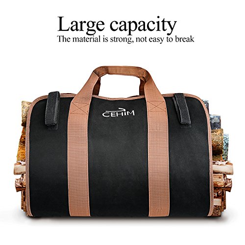 Cehim 薪キャリーバッグ 丈夫で耐久性の高いキャンバス地のウッドトートバッグ 暖炉やストーブのアクセサリー ブラック