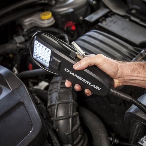 Air, Power and Lighting Within Reach Mounted on the ceiling just like tools in a professional garage, the Garage Power Station by Chamberlain keeps air, power and lighting within reach yet leaves your workspace free of clutter. Air, power and task lighting are all conveniently available within the single retractable cord. Immediate Access to Air No need to drag out a bulky compressor in order to inflate your car tires, bike tires or sports equipment. With quick, easy access to air and the easy-read gauge, you'll be able to keep tire pressure at optimum levels. That means you'll get better gas mileage and save money on fuel. Inflating accessory kit with quick-connect locking inflator and fill nozzle/inflation needle is included. Power Without The Tangles Simply pull the cord down from the ceiling and plug in tools, a shop van or whatever else you need to power up. No need to unwrap tangled power cords or put them away after use. When you're done, the cord easily retracts into the ceiling unit. Lighting to Match The Task Bright LED task lighting on the handle goes right where you need it. Its built-in hook lets you hang the light for hands-free convenience wherever light is needed. For extra area lighting, overhead task lighting is also provided in the unit. Personalized Reach Set the hanging depth of the cord to your preference. Just slide the ball stop anywhere on the utility cord and lock it in place. You'll have instant access, right where you want it.