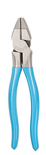 Made in the USA. Improved leverage by moving the rivet closer to the cutter means considerably less force required for cutting. Only Channellock uses knife to anvil style cutting edge to ensure proper cutting edge alignment, resulting in a clean cut every time. Fiercely made in Meadville, PA.Cuts ASCRLaser heat-treated cutting edges last longer Online CHANNELLOCK(R) uses a knife and anvil cutting edge to ensure perfect mating and superior cutting edges life Useful crushing area CHANNELLOCK(R) uses high-grip carbon C1080 for superior performance on the job and electronic coating for ultimate rust prevention CHANNELLOCK BLUE(R) grips for comfort Improved High Leverage - moving the rivet closer to the cutter means considerably less force required for cutting UNITS A OVERALL LENGTH B JAW LENGTH C JOINT THICKNESS D JOINT WIDTH E CUTTING EDGE F NOSE WIDTH H HANDLE SPAN WEIGHT Metric (mm) 190.25 32.5 13.46 30.48 16.00 7.87 51.05 326.59 grams SI (in) 7.49 1.28 0.53 1.20 0.63 0.31 2.01 0.72 pounds Channellock 367 7.5" High Leverage Linemen's Pliers