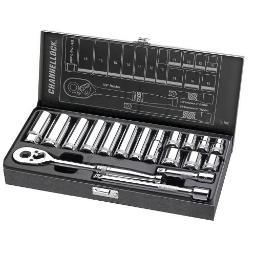 Channellock 38182メトリック18 Piece ( PC ) 3 / 8 "ドライブソケット&ラチェットセット