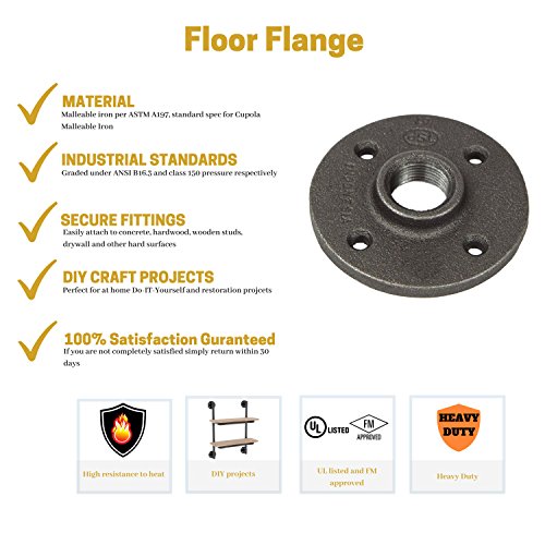 1 / 2 "可鍛性鉄パイプねじ継手床フランジ、ブラック – 10個パック
