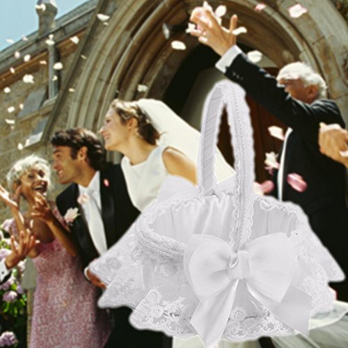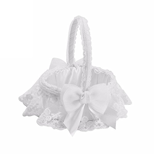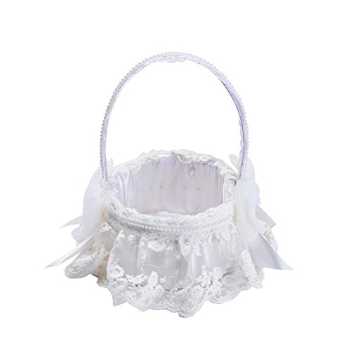 【Cheng-store】創造的な手織りのレースの花の女の子のバスケットヨーロッパの結婚式の花嫁の花のバスケットの花のバスケット