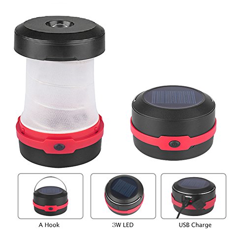 Cheng-store 3W 高輝度LEDランタン 開閉式屋外キャンプライト ソーラーライト 懐中電灯 電池不要 USB充電 アウトドアや災害時の備えに 赤