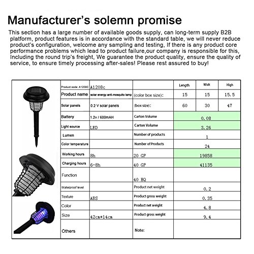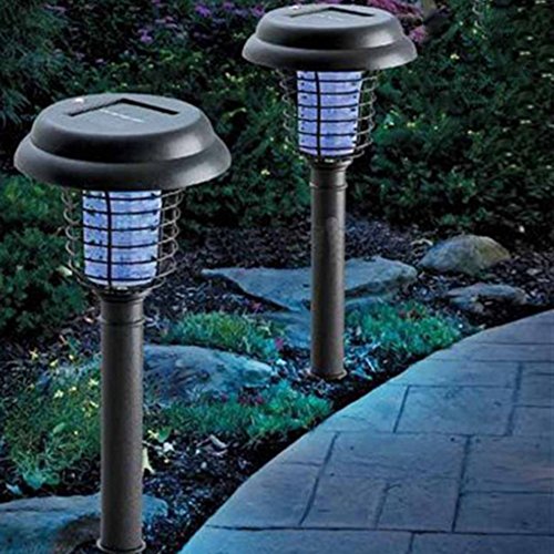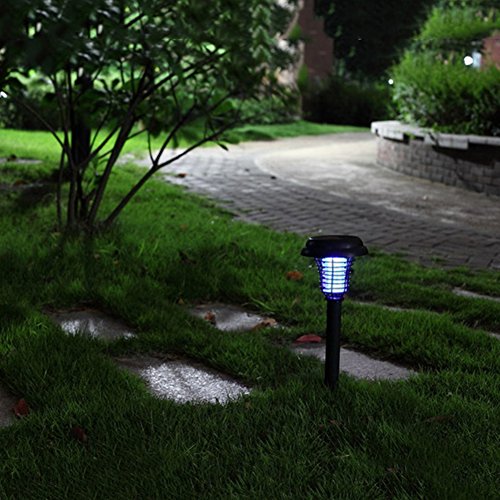Cheng-store LEDソーラー 電撃殺虫器 捕虫器 UV光源吸引式殺虫器 捕虫器 蚊取り ソーラー充電式 虫退治誘蛾灯 蚊取り&照明両用 環境に優しい 防水 地面に挿す 屋外/庭/園芸/玄関などに適用