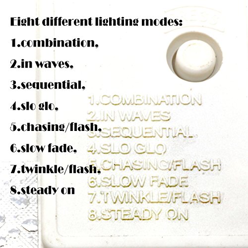 - With 8 different play modes: Combination, In waves, Sequential, Slo-Glo, Chasing/Flash, Slow fade, Twinkle/flash and Steady on