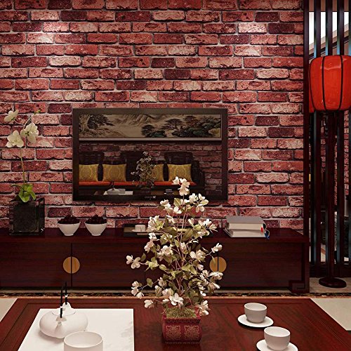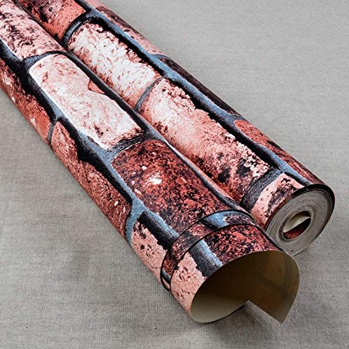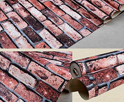 Soomj DIY レンガ タイル ブロック壁紙 壁用 おしゃれ ブリックパターン ストーン 3D 屋内 ベッドルーム装飾 53cm×10m (赤)