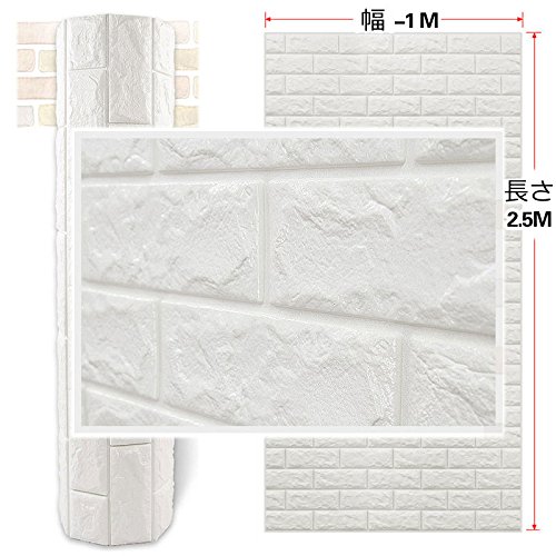 SOOMJ 【100×250cm】ブリックタイル レンガ 軽量レンガシール壁 タイル タイル レンガ 壁紙 レンガ シール (ホワイト)