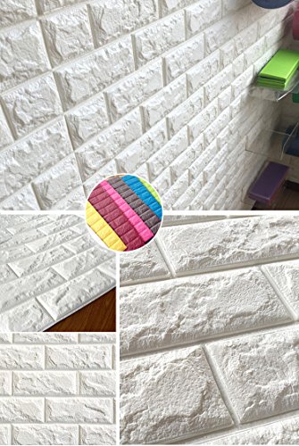 SOOMJ 【ホワイト1枚】ブリック タイル レンガ 壁紙シール 70cm×77cm ブリックステッカー 軽量レンガシール 壁紙シール アクセントクロス ウォールシール はがせる 壁シール