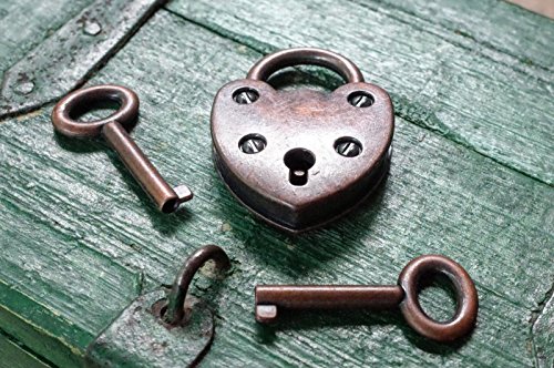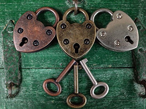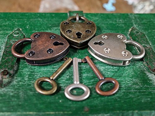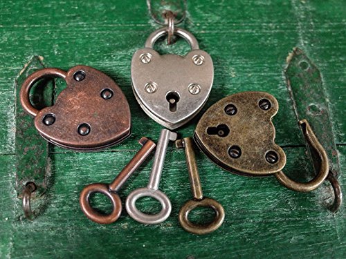 古いビンテージスタイルSmall南京錠キーロックハートシェイプアソートカラー- 3 X ( New )