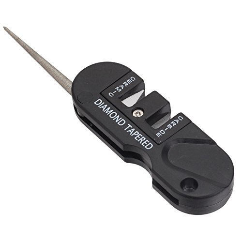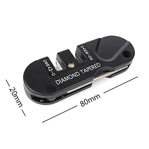 - Multifucntional and Folding design: Diamond Tapered + Carbide + Ceramic Knife Sharpener. Tapered round diamond-coated rod for sharpening serrated and standard edges.