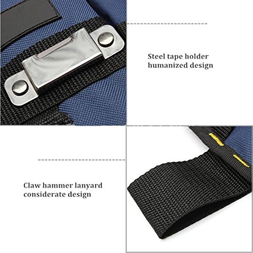 Functions and features: three pockets, a metal buckle hanging, can hang tape or other tools, a rope buckle, can be hung insulation tape and etc.