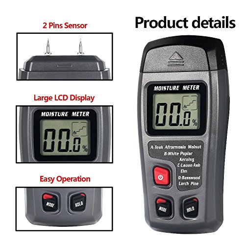 ECat デジタル水分計,2ピンタイプ木材水分測定 木材の含水率検出器 高精度 木材 建築材料の湿度測定に(電池を除く) (灰)