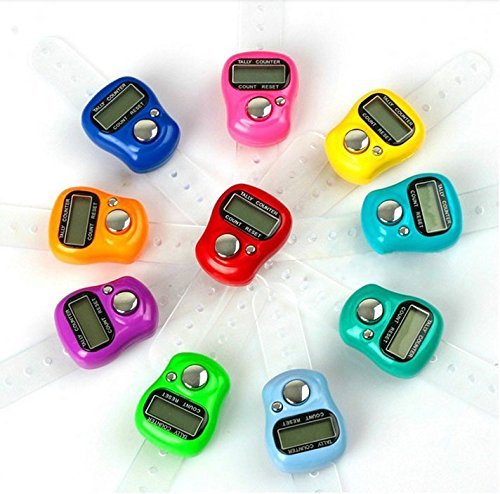 10 PCS OF Digital Electronic LCD Tasbih Finger Tally Counter Islamic Zikr Islam Muslim (ASSORTED COLORS ) This Tally counter is used as Tasbih/Prayer Beads to make Zikr for ALLAH , also could be used for business and in many of life fields. The world's smallest commercially available electronic tally counting device/ Electronic Tasbih Comes with adjustable finger Belt Counts up to 9,999 Easy to use Reset button count button Light Weight Easy to use EASY TO READ Long-life battery Small and compact design LCD screen display The finger strap is adjustable This is one gorgeous piece!