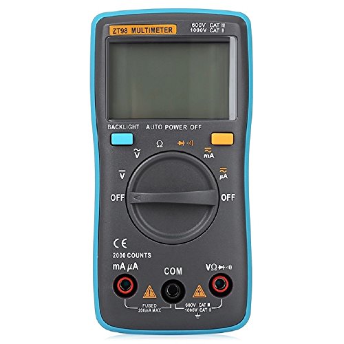 zt98メイン機能が導入されています。 – 自動 – 自動電源オフ最大表示: 2000カウント – 電源は2 X AAA電池(含まれていない) – までの範囲での足の保護抵抗、キャパシタンス、周波数範囲 – 主な寸法:AC / DC電圧、AC / DC電流、抵抗、ダイオードと継続性のテスト一般タイプ:マルチメーター測定範囲:オート技術パラメータMAXを参照してください。表示: 2000 DC電圧: 200 mV / 2 V / 20 V / 200 V / 800 V交流電圧: 200 mV / 2 V / 20 V / 200 V / 600 V DC電流: 20 mA / 200 mA AC電流: 20 mA / 200 mA抵抗: 200ohm / 2 kohm / 20 kohm / 200 KOhm / 2オーム/ 20オーム