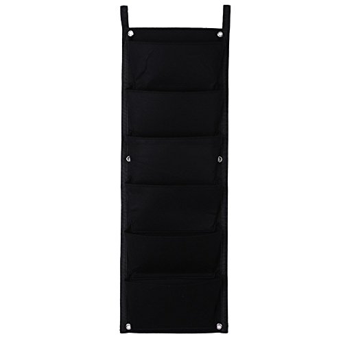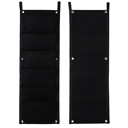 6 Pockets Black Hanging Vertical Wall Garden Planter Flower Planting Bags Pot Home Indoor Outdoor Balcony Gardening Seeding.