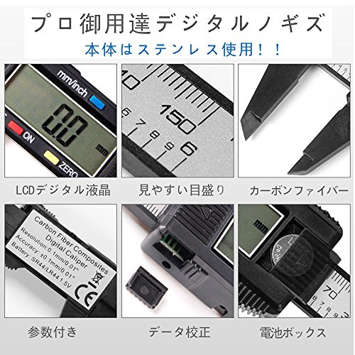 デジタルノギス 精密測定 150mm mm/inch切替可能 カーボンファイバー製 液晶デジタルノギス ゼロリセット 外径/内径/段差計測 高精度 コンパクト 電池付き 大工やDIYなどに