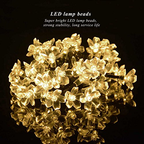 (Ckeyin) ソーラー ライトLED ガーデンライト ストリングフェスライト 50球 桜型 屋外 LED電飾 イルミネーション クリスマスツリー 飾り (ウォームホワイト)