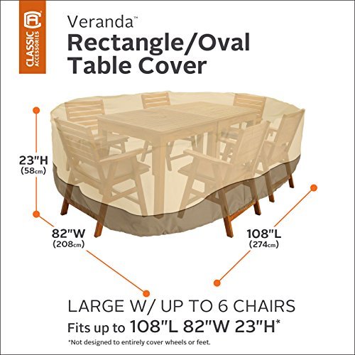 Classic Accessories Veranda Patio Table & Chair Set Cover 70932, Large, Pebble for Rectangular or Oval Table up to 108 Inches Long [並行輸入品]