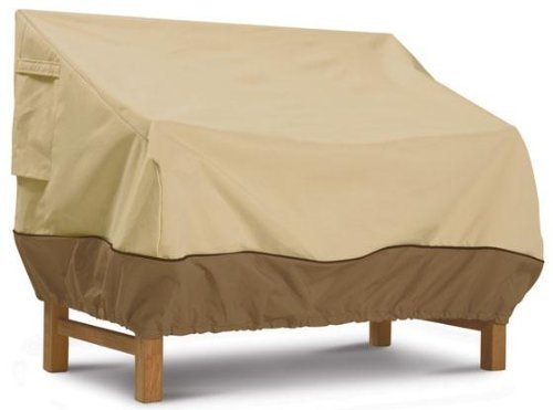 The Veranda 70982 Small Sofa/Love Seat Cover provides elegant protection against the elements. The heavy-duty Gardelle protective fabric system won’t crack in cold weather and features an elegant fabric surface with a protective waterproof under-coating and a protective splash guard skirt. The small sofa/love seat cover features an elastic cord in the bottom hem for a fast custom-like fit and dual vents reduce inside condensation and lessen ballooning in winds. It also comes with padded handles for easy fitting and removal. This small sofa/love seat cover comes with a three year warranty and measures 32-1/2 by 33 by 58 inches.