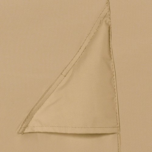 Fits rectangular/oval tables and 6 standard chairs. Available in both medium and large. The Terrazzo series of furniture cover from Classic Accessories provides high-end style and protection at a value price. Features include: Rain-tie protective fabric - 600 x 300 poly/PVC - provides protection against rain, snow, sun, and dirt and won't crack in cold weather. StayOn elastic - elastic loops fit over legs to keep cover on during high winds and breezy conditions. Custom fit - elastic cord in the bottom hem for a fast and custom fit. Air vents - reduce inside condensation and wind lofting. No. 58252: Shape: Oval/Rectangle, Material: Poly/PVC, Color: Tan, Dimensions: Up To 89" L x 57 " W x 23" H No. 58262: Shape: Oval/Rectangle, Material: Poly/PVC, Color: Tan, Dimensions: Up To 106" L x 82" W x 23" H ---- 1. 海外直輸入品となりますので、新品であっても、パッケージに多少のダメージがある場合もございますが、商品本体には問題ございませんのでご安心ください。2. 日本国内でのメーカーによる製品保証等は適用されません。3. パッケージや、説明書等は、英語表記となります。