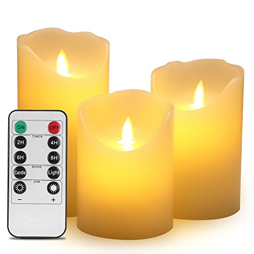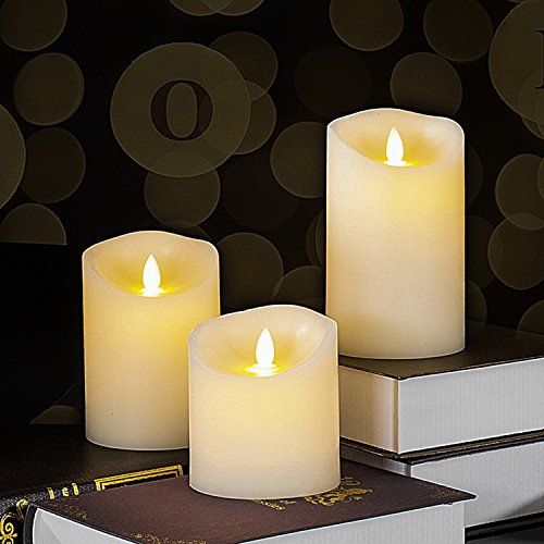 Flameless Candles 4 5 6 Set of 3 Ivory Dripless Real Wax Pillars Include Realistic Dancing LED Flames and 10-key Remote Control with 24-hour Timer Function【クリスマス】【ツリー】 [並行輸入品]