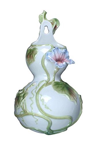 10.5 Inch Pale Blue Porcelain Gourd Wall Hung Flowerpot w Blue Flowers【クリスマス】【オーナメント】 [並行輸入品]