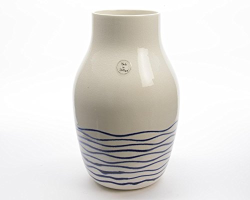 NORTHLIGHT Seaside Treasures Navy Blue Striped Crackle Finished Vase 14 Home Decor and Furniture White【クリスマス】【ツリー】 [並行輸入品]