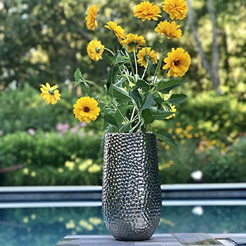 The Crosby Street Chic Silver Tall Vase Shiny Glazed Exterior Smooth Black Glazed Interior 12 1/4 Inches Tall Bottom Pads By Whole House Worlds【クリスマス】【ツリー】 [並行輸入品]