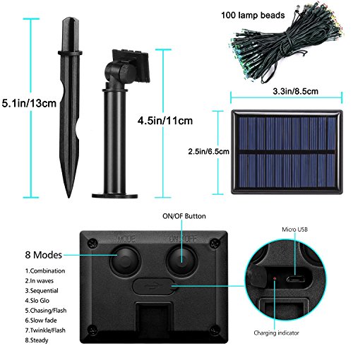 2 Pack USB Solar String Lights Zenic 39ft 100 LED 8 Modes Solar or USB Powered Decorative Lighting Waterproof String Lights for Home Garden Party Holiday Festival (Multicolor x 2)【クリスマス】【ツリー】 [並行輸入品]