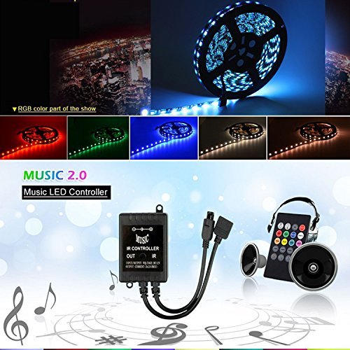 Music Control LED Strip Lights 16 Colors & 5050 Epoxy Flexible RGB Lights Belt Waterproof Durable Lights 16.4FT/5M LED Lights Strip 300 LED Lights IR controller & 12V 5A Power【クリスマス】【ツリー】 [並行輸入品]