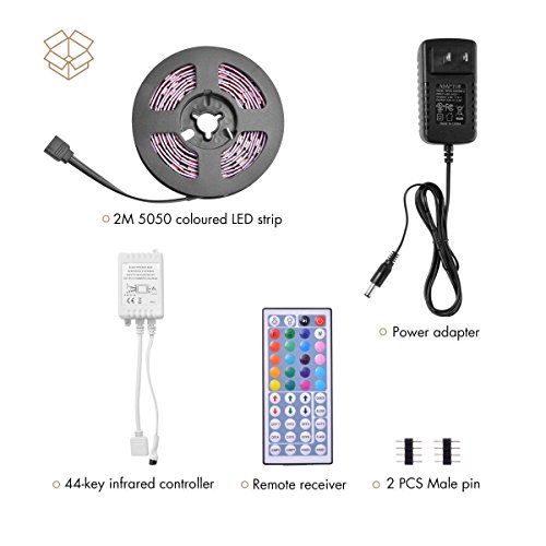 Sunix 6.6ft 5050 LED Strip Lights Kit RGB Colour Changing LED Flexible Strip + DC12V Power Adapter + 44-Key Remote Non-Waterproof Mood Decoration Lighting【クリスマス】【ツリー】 [並行輸入品]