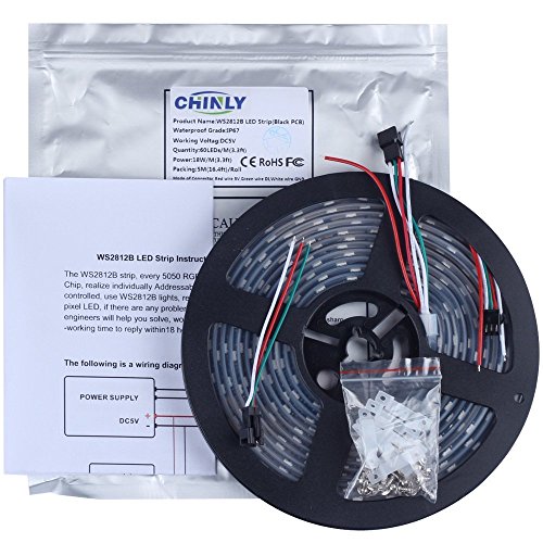 CHINLY 16.4ft WS2812B Individually Addressable LED Strip Light 5050 RGB SMD 300 Pixels Dream Color Waterproof IP67 Black PCB 5V DC (Black PCB 16.4ft 300leds waterproof)【クリスマス】【ツリー】 [並行輸入品]