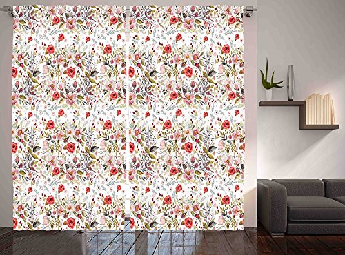Romantic Flower Decor Curtain by Ambesonne Romantic Floral Roses and Flowers Leaves Style Spring Design Window Drapes 2 Panel Set for Living Room Bedroom 108 X 84 Inches Pink Red Grey and Green【クリスマス】【ツリー】 [並行輸入品]