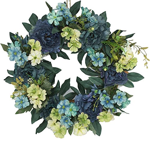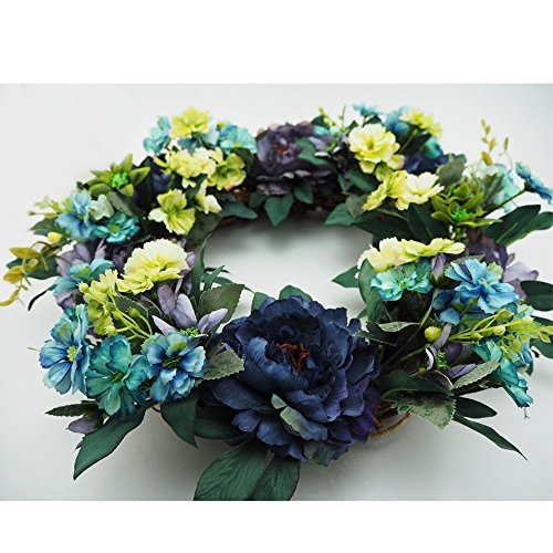 Emlyn Hand-made Rattan Artificial Flower Garland Wreath 15 Inch for Home Church Wedding Decoration (Blue)【クリスマス】【ツリー】 [並行輸入品]