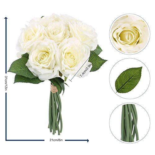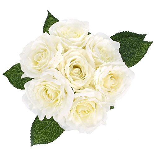 SOLEDI Artificial Flowers 7 Heads Hand Drawn Artistic Roses for Party Wedding Home Bar Decor (White)【クリスマス】【ツリー】 [並行輸入品]