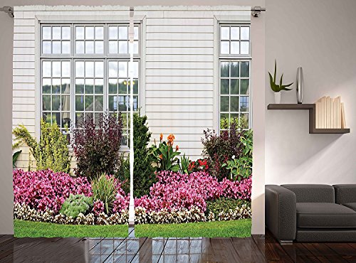 Mansion Country Decor Curtains by Ambesonne Dreamy Relaxing Calm Garden Grass View Spring Mood with Colorful Flowers Front of the Window Outdoor 108 X 90 Inches Fuchsia Green White and Purple【クリスマス】【ツリー】 [並行輸入品]
