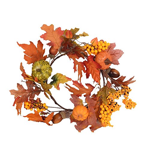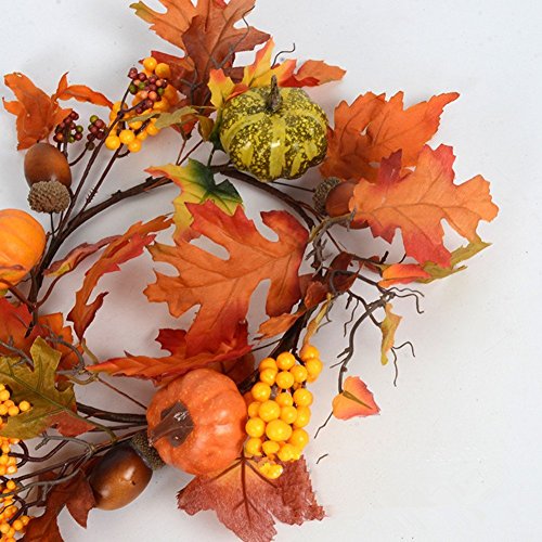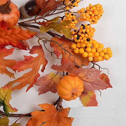 Meiliy Autumn Door Wreath Trimmed With Fall Leaves Pumpkin Hazelnut Berries For Home Hotel Office Decoration【クリスマス】【ツリー】 [並行輸入品]