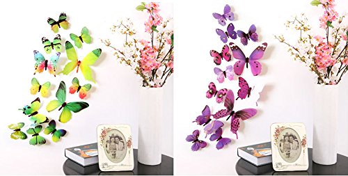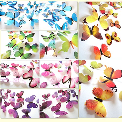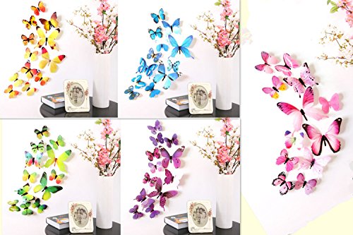 - セット内容: とても色鮮やかでインテリアにぴったりの立体蝶々60匹 1セット ピンクx12個 ブルーx12個 グリーンx12個 イエローx12個 パープルx12個