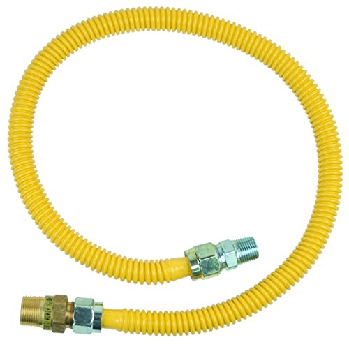 1/2 In. ID (5/8 In. OD) x 36 In. corrugated stainless steel with corrosion resistant coating;Safety+PLUS Excess Flow Valve helps protect against gas fires and explosions - 3/4 In. MIP (with 1/2 In. FIP tap) connection to gas supply or gas ball valve;Approved for indoor and outdoor use. 100% Leak Tested;Use with natural, manufactured, mixed and liquefied petroleum (LP or propane) gases and LP gas-air mixtures;CSA certified. Designed, machined & assembled in the USA