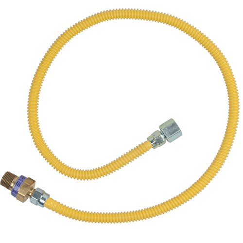 CSA certified. Designed, machined & assembled in the USA. BrassCraft's 3/8 In. Female Flare (1/2 In. MIP) EFV x 1/2 In. FIP x 36 In. Safety+PLUS Gas Appliance Connector is 3/8 In. OD (1/4 In. ID) with a maximum operating capacity of 33,400 BTU's. This Safety+PLUS gas connector combines excess flow technology with the advanced corrosion resistance of ProCoat, to provide a safer gas connector for home and family. In the event of a gas line rupture or disconnect, the Safety+PLUS valve restricts gas flow at the appliance to a non-hazardous level. This immediate action helps avert the potential for a dangerous release of gas into the home. BrassCraft's stainless steel gas connector is protected with a proprietary polymer coating designed to withstand prolonged exposure to harsh household cleaning, plumbing repair and masonry products. ProCoat coating is applied to the corrugated stainless steel connector using advanced powder-coat technology. Unlike conventional dipped or sprayed coatings, the ProCoat coating is baked directly on the connector surface at high temperatures to provide a uniform coating over the entire length of the connector. The coating is applied only after the connector has been 100% leak tested, prior to nut and fitting assembly. This process results in the most complete corrosion resistance available.