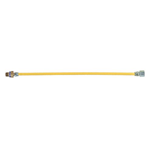 CSA certified. Designed, machined & assembled in the USA. BrassCraft's 3/8 In. Female Flare (1/2 In. MIP) EFV x 1/2 In. FIP x 24 In. Safety+PLUS Gas Appliance Connector is 3/8 In. OD (1/4 In. ID) with a maximum operating capacity of 40,000 BTU's. This Safety+PLUS gas connector combines excess flow technology with the advanced corrosion resistance of ProCoat, to provide a safer gas connector for home and family. In the event of a gas line rupture or disconnect, the Safety+PLUS valve restricts gas flow at the appliance to a non-hazardous level. This immediate action helps avert the potential for a dangerous release of gas into the home. BrassCraft's stainless steel gas connector is protected with a proprietary polymer coating designed to withstand prolonged exposure to harsh household cleaning, plumbing repair and masonry products. ProCoat coating is applied to the corrugated stainless steel connector using advanced powder-coat technology. Unlike conventional dipped or sprayed coatings, the ProCoat coating is baked directly on the connector surface at high temperatures to provide a uniform coating over the entire length of the connector. The coating is applied only after the connector has been 100% leak tested, prior to nut and fitting assembly. This process results in the most complete corrosion resistance available.