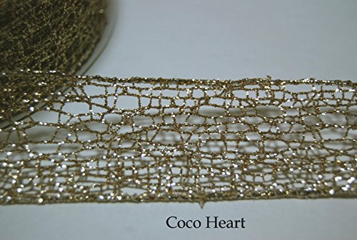 ~Coco Heart~ X’mas ゴールドメッシュリボン ワイヤー入り 1m単位 (リース・プリザ・ドライフラワー)