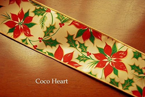 ~Coco Heart~X’mas ゴールドホーリーリボン 幅広 ワイヤー入り 1m単位 (リース・プリザ・ドライフラワー)