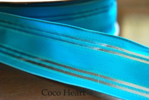 ~Coco Heart~ ストライプブルー ワイヤー入りリボン 1m単位 (リース・プリザ・ドライフラワー)