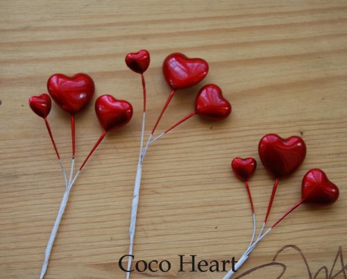 ~Coco Heart~ トリプルハートピック レッド 3本セット(リース・プリザ・ドライフラワー)